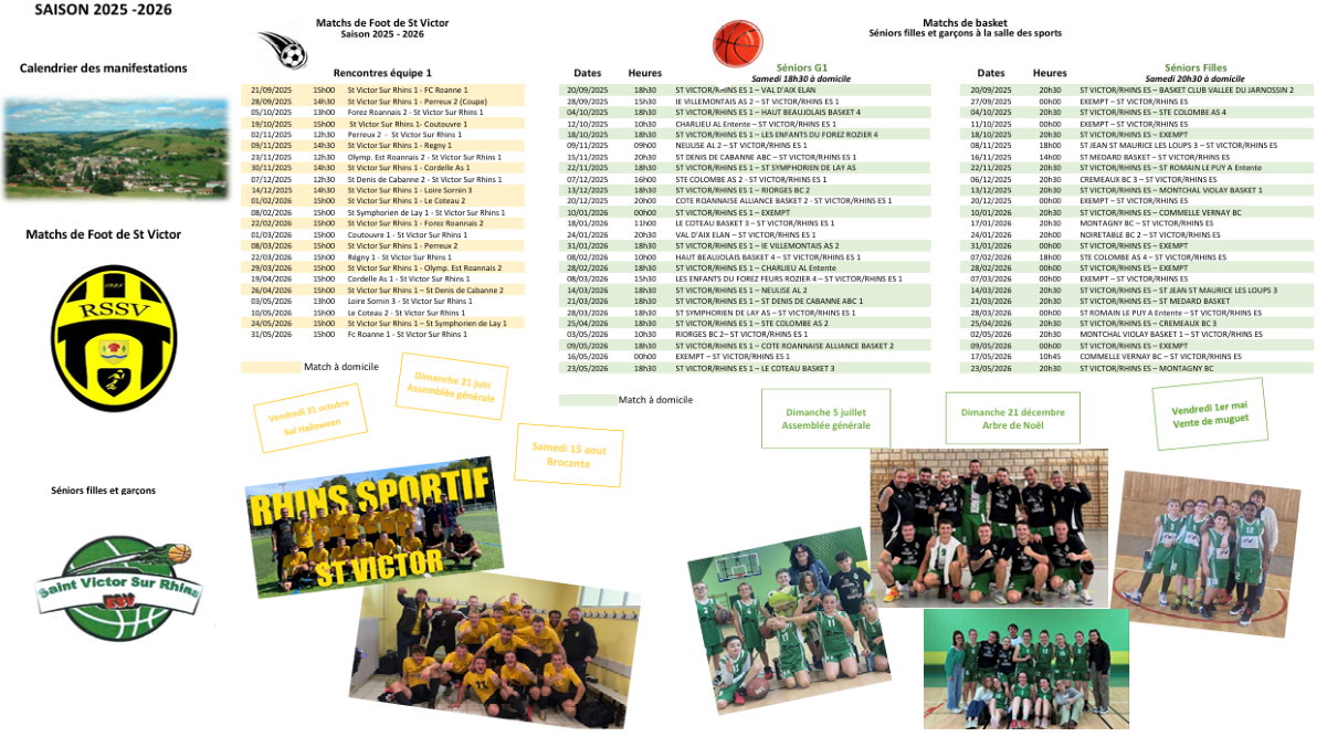 Manifestations et matchs (Basket Ball et Football) saison 2025-2026